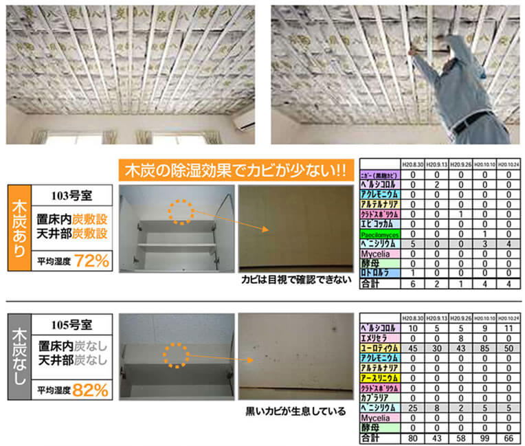 天井裏に「炭八」を入れるとなぜ除湿するのか?